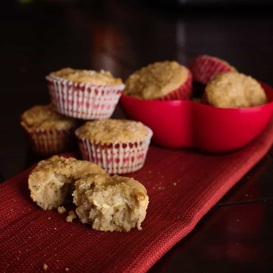 Looking at photos, many of our friends and neighbors around the country are back to school already. We’ve got a week of summer vacation left, the kids head back August 30th. I really need to start thinking about all of the foods I need to have on hand and prep for hungry after school kids- we’ve pretty much gone all 1971 this summer and fended for ourselves! One recipe my oldest wants to try on her own this week is our Apple Cream Cheese Muffins. These never last long, but the kids love them so much that I don’t mind making them in double batch! Especially if someone else wants to do the baking for me…