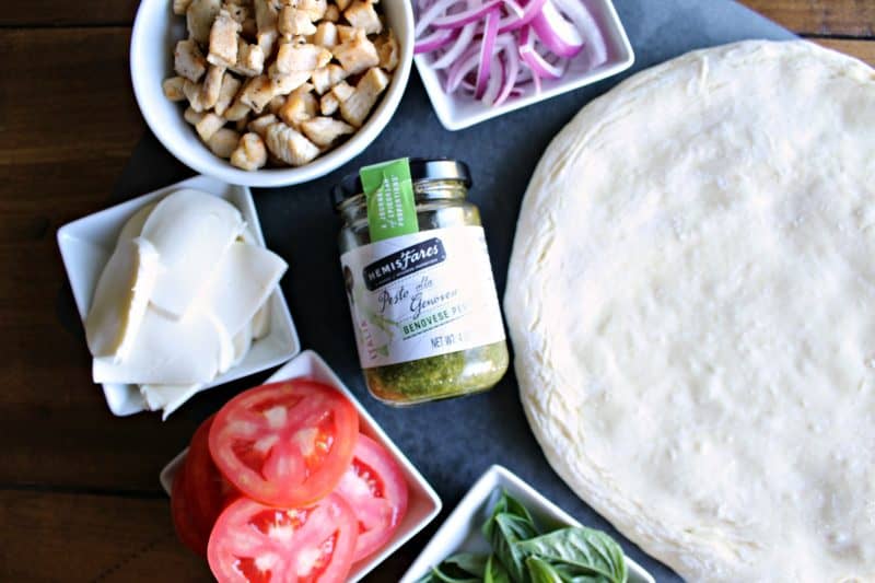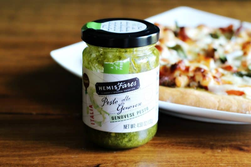 A short time ago we asked you to imagine taking a trip to Italy and the opportunity to experience the beauty, the culture, and one of the most food-rich areas in the world when we first introduced you to HemisFares. HemisFares is all about bringing the absolute best from a country back to your local Kroger family of stores, including the taste of Italy with their delicious Pesto. The HemisFares products are individually sourced, crafted and imported from the country of origin. Their Pesto alla Genovese was the inspiration for this amazing Chicken Pesto Pizza.