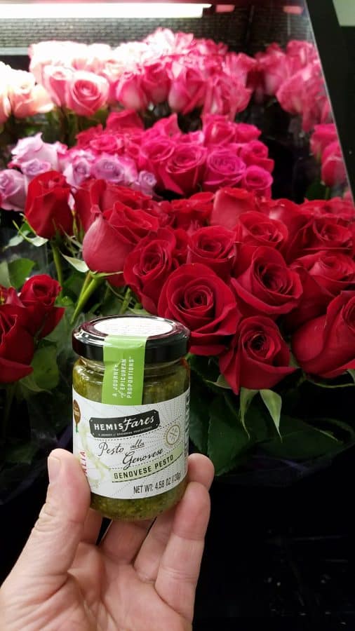 We recently stopped at a nearby Kroger family store in Mount Pleasant, Michigan and picked up a jar of HemisFares Genovese Pesto. This is a green pesto but they also have a red.