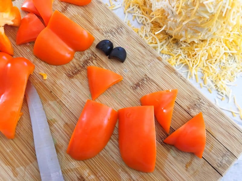 4. Wash and slice your bell pepper into 5 pieces: beak, 2 feet, and 2 wings like pictured.