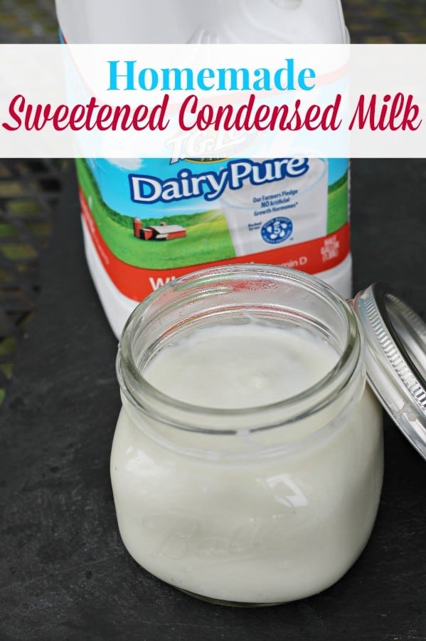 I have been making my own homemade sweetened condensed milk for a while now wanting to save money and really, it’s such a simple thing to make, it seems silly to buy it! Choosing exactly what ingredients I put into recipes means I can choose what those ingredients have or don’t have added to them….and since we’ve always got milk in our refrigerator anyway, why not make our own sweetened condensed milk for recipes to have on hand? We love using top quality ingredients in our recipes at home, and when DairyPure reached out to ask if we’d make something with their milk, my first thought was to do a simple recipe that can be used in many ways.