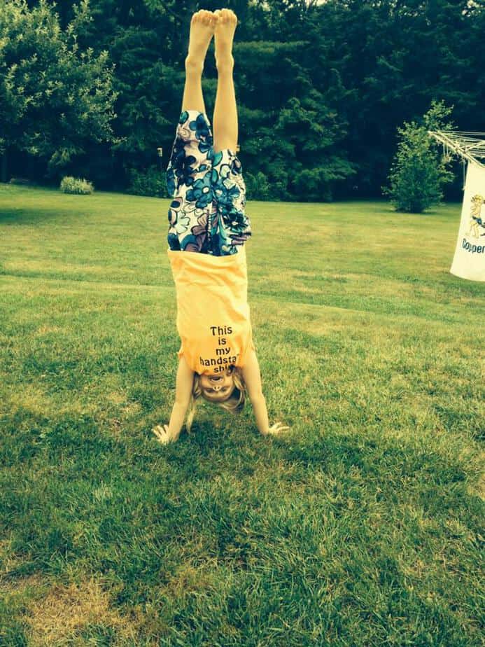 First, I love that t-shirt. Spencer is in gymnastics and his handstand is his favorite.
