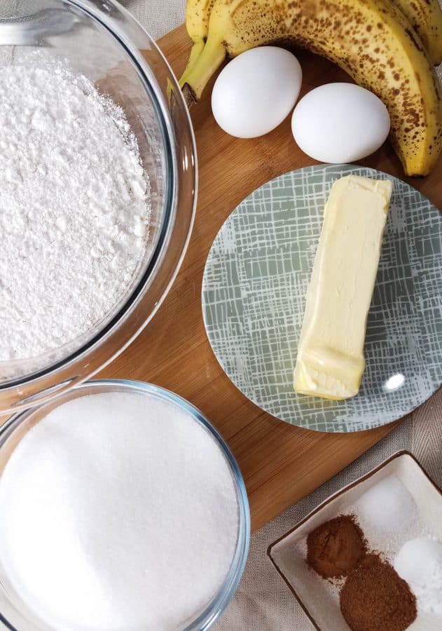 Just like baked banana bread, you will need to use overripe bananas. If your bananas aren’t quite as ripe as you need them to be, you can speed up the process using a few different methods. The easiest way to ripen bananas quickly is to simply put them in a brown bag. This method is super easy, but will still take about a day. If you’re in a hurry, you can ripen your bananas very quickly in the oven. Place unpeeled bananas on a baking sheet and heat for about 25 minutes at 350. It’s a good idea to line your baking sheet with wax paper or foil since the bananas will usually leak a little bit. Also, the peels will be black after baking. This is completely normal!