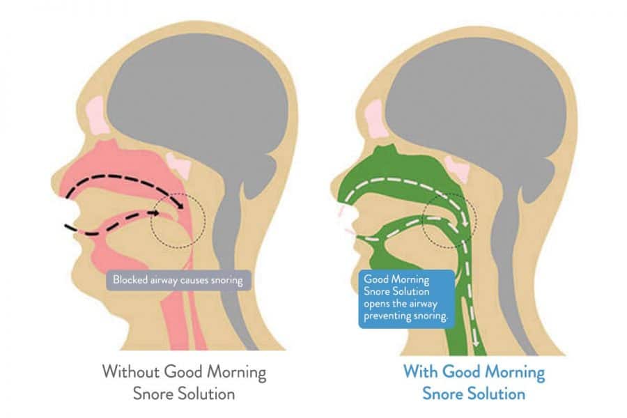 The Good Morning Snore Solution mouthpiece works by moving the tongue forward to clear the blocked airways that are to blame for snoring. It’s more effective and more comfortable for most people than other products. It also has few, if any, side effects. It’s also more affordable than other things recommended for stopping snoring.